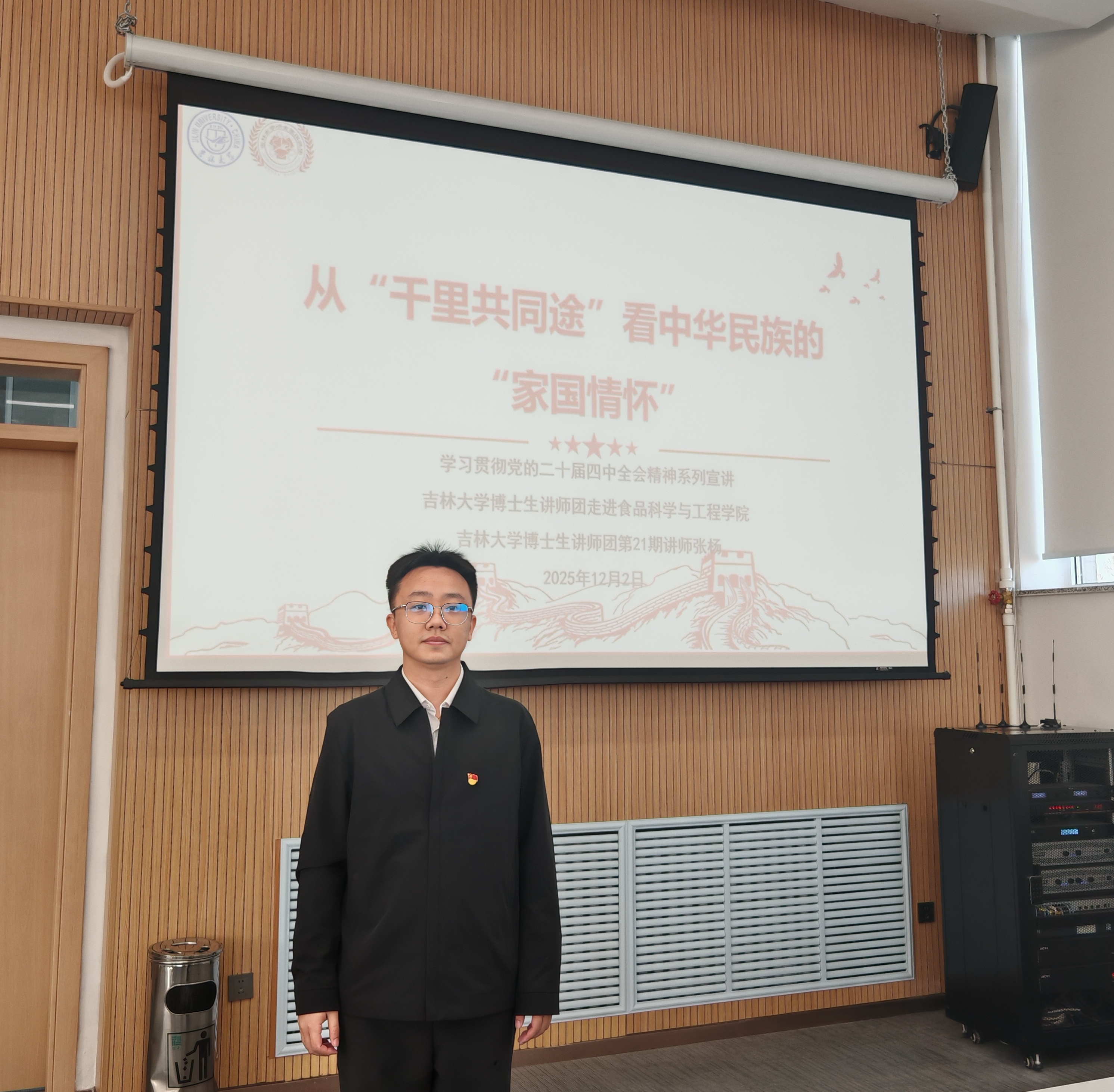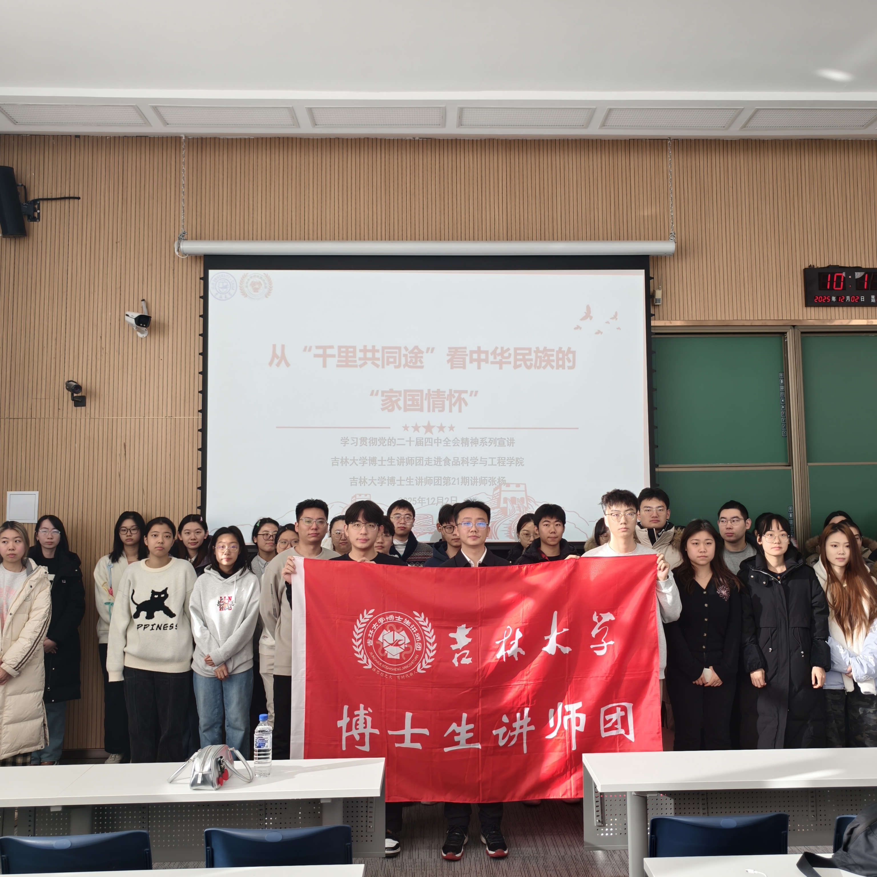为深入学习贯彻党的二十届四中全会精神,吉林大学党委研究生工作部组织博士生讲师团走进校内各学院,开展党的二十届四中全会精神宣讲系列活动。12月2日上午,张杨在和平校区科学讲堂进行了宣讲,食品科学与工程学院研究生党支部党员和研究生会成员参与了本次活动。