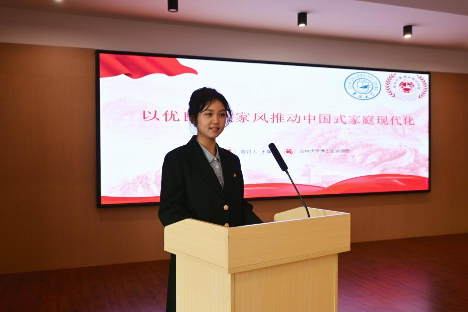 王馨颍围绕“以优良家教家风推动中国式家庭现代化”主题,立足习近平总书记“人民对美好生活的向往就是我们的奋斗目标”相关论述,深刻阐释家庭作为社会基本单元的时代价值,系统梳理了从古至今的中华优秀家书家训文化,生动展现总书记强调的“中华优秀传统文化是中华民族的精神命脉”。针对当前家庭建设面临的新挑战,宣讲聚焦人民群众关切的婚育、养老、教育等问题,通过真实案例剖析,既揭示问题又传递正能量。