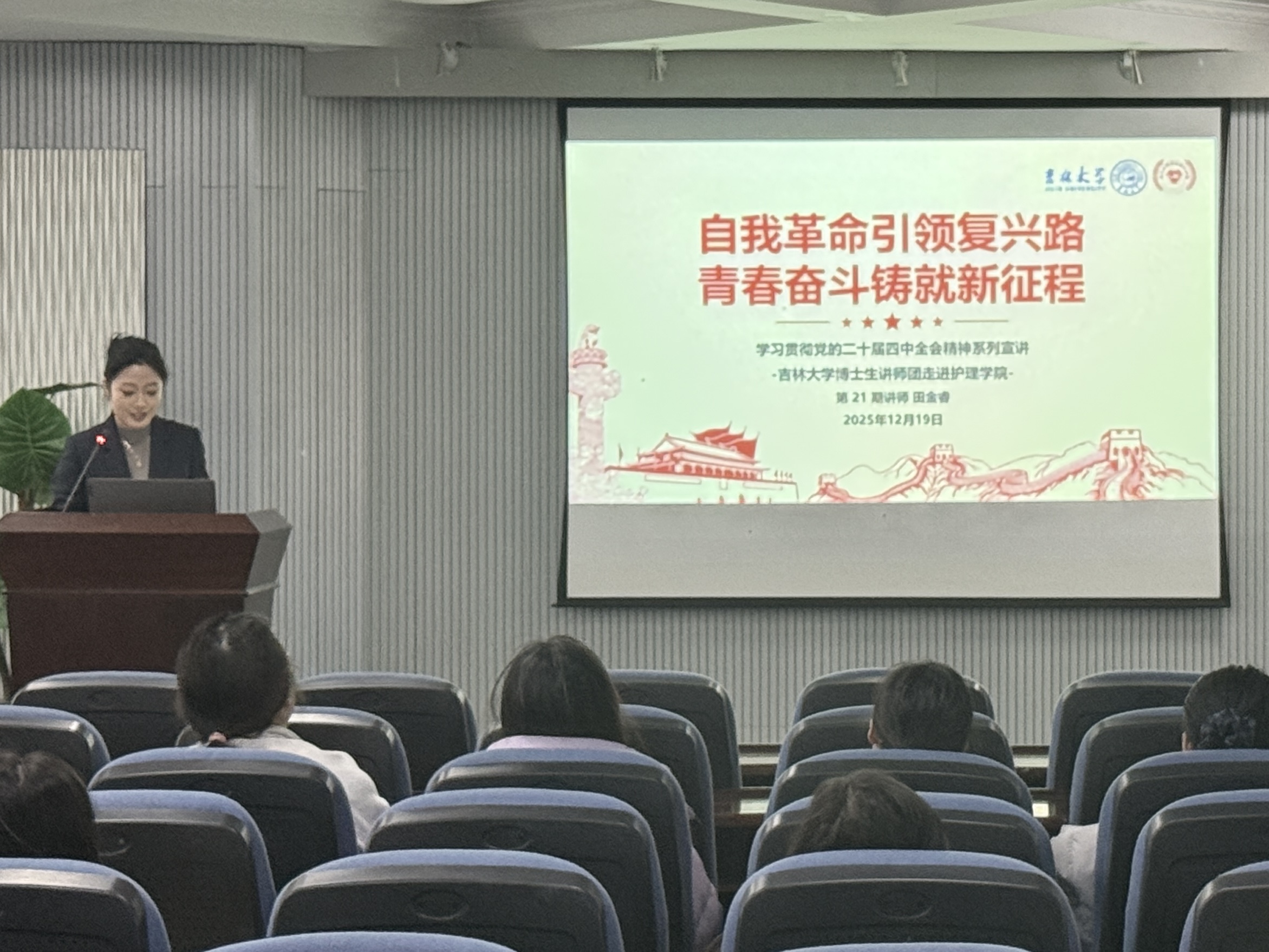 本次宣讲有效帮助同学们系统理解党的二十届四中全会精神的深远意义与实践要求,进一步认识到自我革命不仅是党永葆生机的重要法宝,也与每位青年的成长环境与未来发展息息相关。在理论阐释与案例分析的双重支撑下,同学们对如何在护理职业生涯中坚守清廉底线、弘扬实干作风、融入复兴大局形成了更清晰的认知。吉林大学博士生讲师团将继续深入各学院开展理论宣讲,让党的创新理论在青年群体中生根发芽,滋养更多学子走向更广阔的未来。