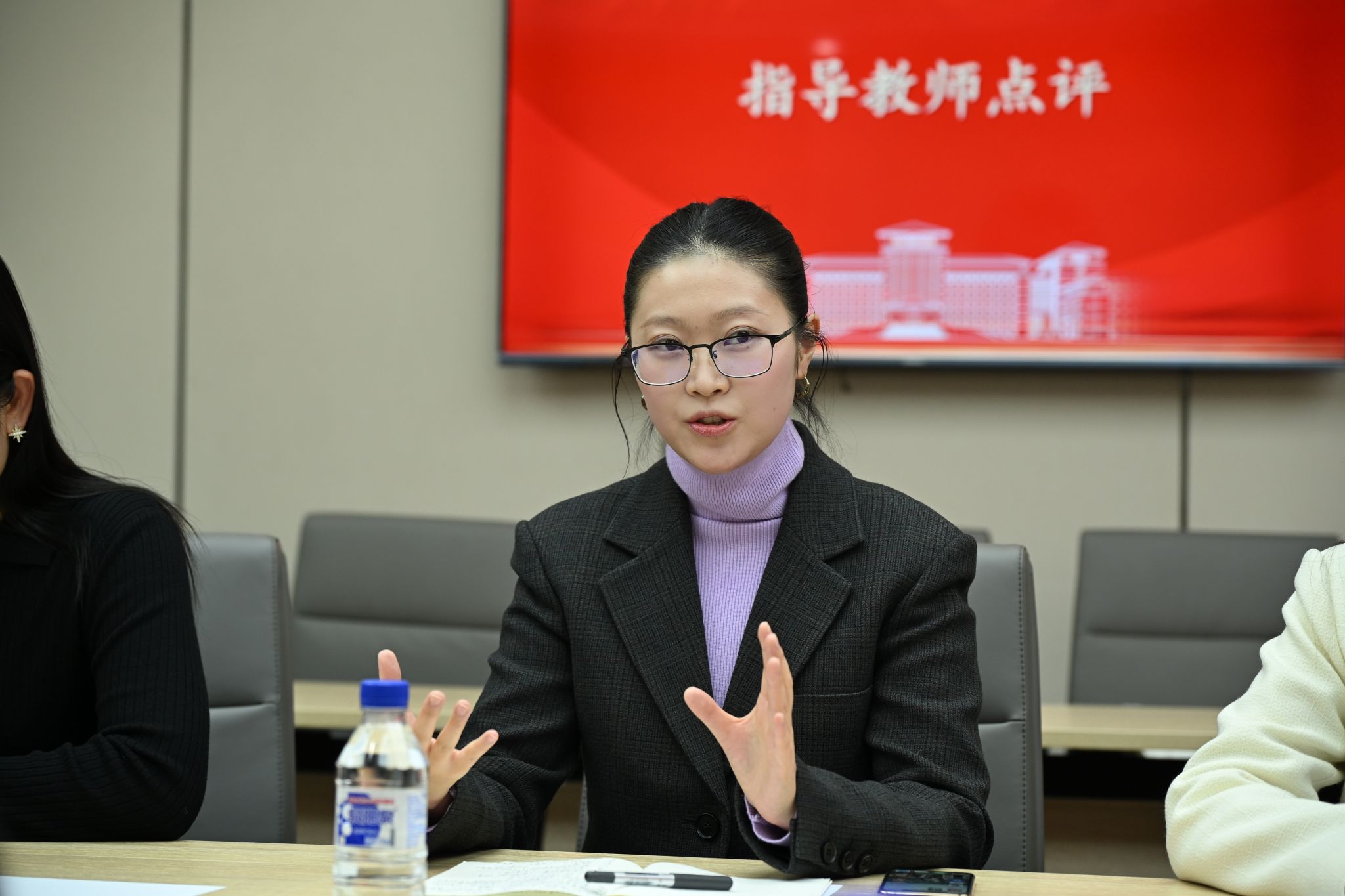 展示结束后,指导教师刘凤文竹进行点评。她充分肯定参评讲师理论扎实、表述流畅、热点捕捉敏锐等优点,同时指出三方面不足:一是细节把控有待加强,需注意概念精准表达、PPT细节及读音规范;二是宣讲方式需更加轻松通俗,将“深理论”转化为“浅道理”;三是要强化听众意识,关注受众背景与接受能力,增强互动性与获得感。她勉励大家扬长补短,让党的创新理论真正入脑入心。