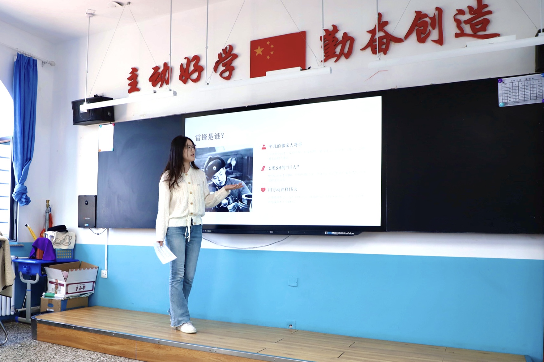 在主题宣讲环节,法学院2025级硕士研究生修一宁以生动平实的语言,从雷锋的生平事迹切入,讲述了“雷锋出差一千里,好事做了一火车”的经典故事,深入阐释了雷锋精神中“服务人民、助人为乐”的奉献品格与“迎难而上、争分夺秒”的钉子精神。她结合校园生活中的真实案例,引导学生们思考“新时代如何学雷锋”,帮助孩子们将抽象的精神内涵转化为日常可感、可行的具体行动。