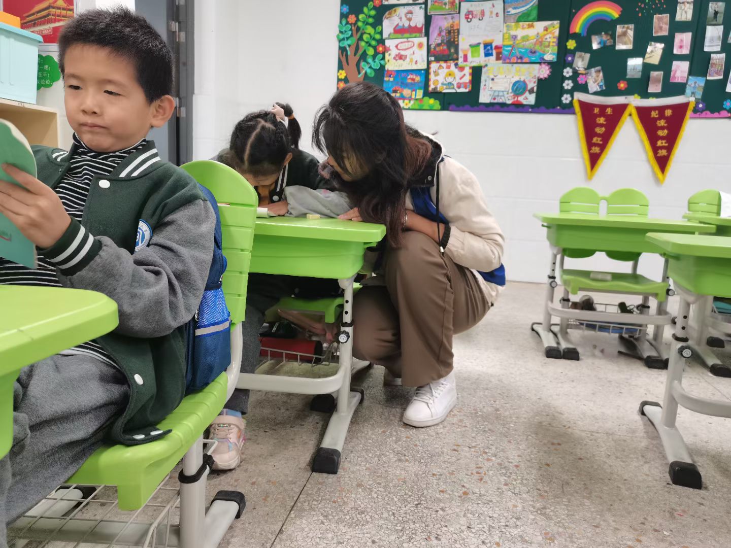 在为一个小女孩讲数学题目时,我运用多种方式进行讲解,使其逐步明晰解题思路。小女孩解出题目后,主动赠与糖果以示感谢。孩童质朴真挚的表达方式,令人倍感温暖。休息时,我和孩子们一起做手工橡皮泥。同桌的小姑娘怎么也捏不好,急得快哭了,我为其重新更换一块新的橡皮泥后,耐心引导其慢慢捏合。做好后,她捧着作品看了好一会儿,小心翼翼地收进书包。这些事都很小,但我能感觉到他们对我一点点建立起了信任。