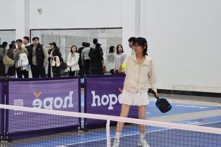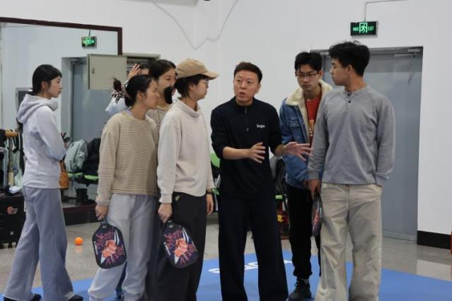 在随后匹克球体验日活动中 ,主办方为参与者准备了球拍与统一用球 ,专业教练集中讲解后,体育学院同学在各场地一对一指导,保障了体验活动的专业性与安全性。同学们初步了解匹克球规则、技法及常识后,纷纷拿起球拍,踏上场地实践。场馆内击球声与欢声笑语交织,同学们在运动中充分感受到了匹克球的独特魅力与竞技乐趣。