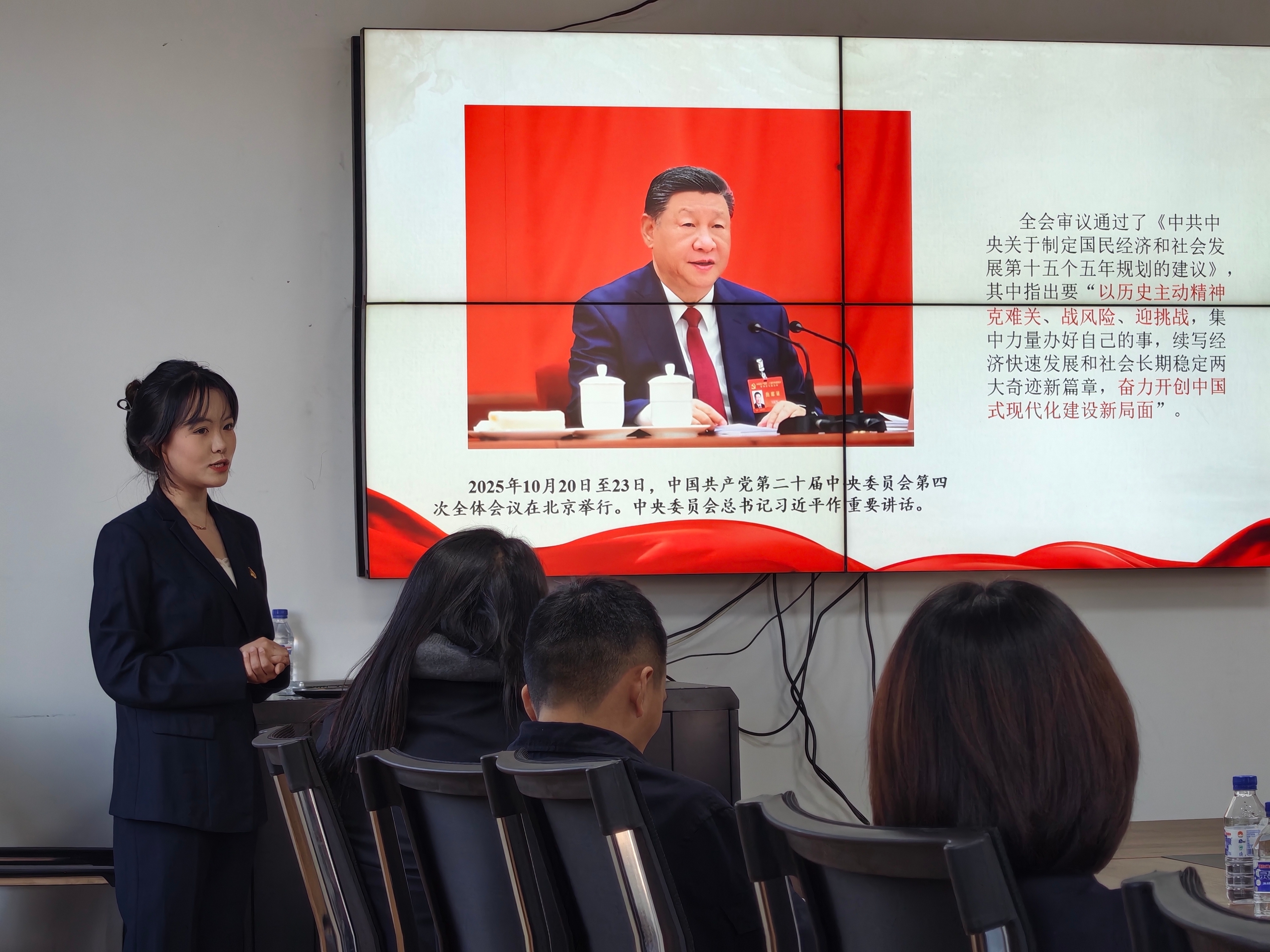 为深入学习宣传贯彻习近平新时代中国特色社会主义思想和党的二十届四中全会精神,充分发挥吉林大学博士生讲师团的理论宣讲优势,引领广大党员干部和群众深学细悟党的创新理论与决策部署,坚定历史自觉、强化使命担当。12月26日,吉林大学博士生讲师团讲师王子悦受邀赴吉林省春城热力股份有限公司开展宣讲,公司20余名党员代表参与本次活动。
